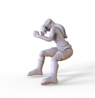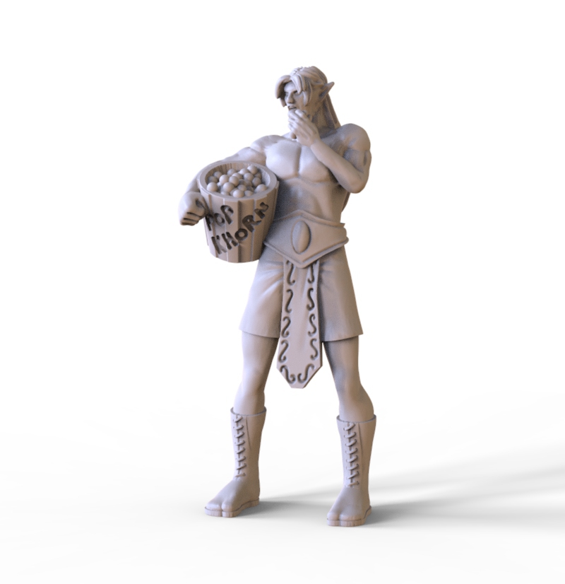 Fan03: Sitzender Minotaur mit Popcorn, als Fan für Bloodbowl. Passend für jedes Stadion oder Diorama.