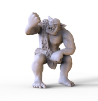 Fan02: Sitzender Troll mit Goblin streitend, als Fan für Bloodbowl. Aber sicher auch anderweitig einsetzbar.